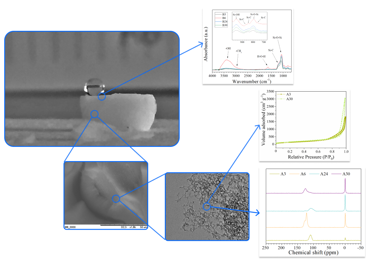 Silica aerogels are highly porous materials known for their large specific surface areas and wide pore size distributions. These versatile materials are synthesized using the sol-gel method and have a broad range of applications. In our group, we are working on the synthesis of hydrophobic silica aerogels designed to trap contaminants in water. Building on the discovery of the high PET-degrading potential of the PHL7 enzyme, we are optimizing the structural characteristics of these aerogels to serve as effective carriers for plastic-degrading enzymes.